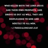 who killed both the Lord Jesus and their own prophets, and drove us out as well. They are displeasing to God and hostile to all men,