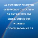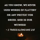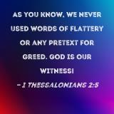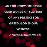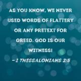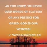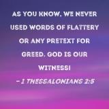 As you know, we never used words of flattery or any pretext for greed. God is our witness!