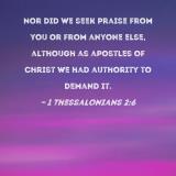 Nor did we seek praise from you or from anyone else, although as apostles of Christ we had authority to demand it.