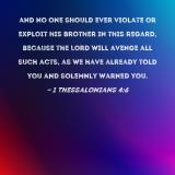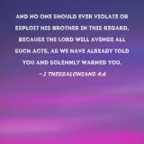 and no one should ever violate or exploit his brother in this regard, because the Lord will avenge all such acts, as we have already told you and solemnly warned you.