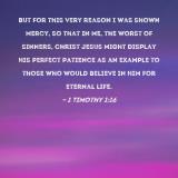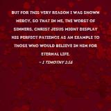 But for this very reason I was shown mercy, so that in me, the worst of sinners, Christ Jesus might display His perfect patience as an example to those who would believe in Him for eternal life.