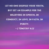 Let no one despise your youth, but set an example for the believers in speech, in conduct, in love, in faith, in purity.