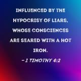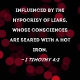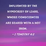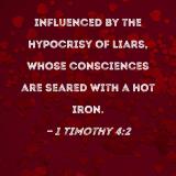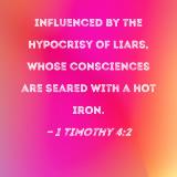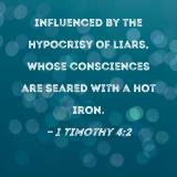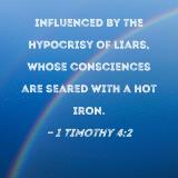 influenced by the hypocrisy of liars, whose consciences are seared with a hot iron.