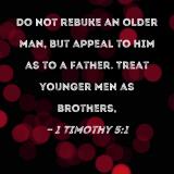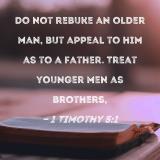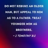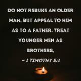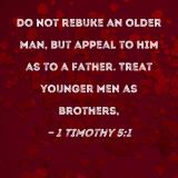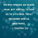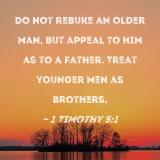 Do not rebuke an older man, but appeal to him as to a father. Treat younger men as brothers,