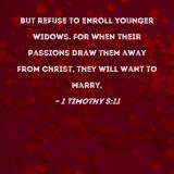 But refuse to enroll younger widows. For when their passions draw them away from Christ, they will want to marry,