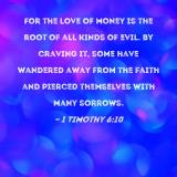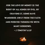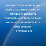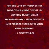 For the love of money is the root of all kinds of evil. By craving it, some have wandered away from the faith and pierced themselves with many sorrows.