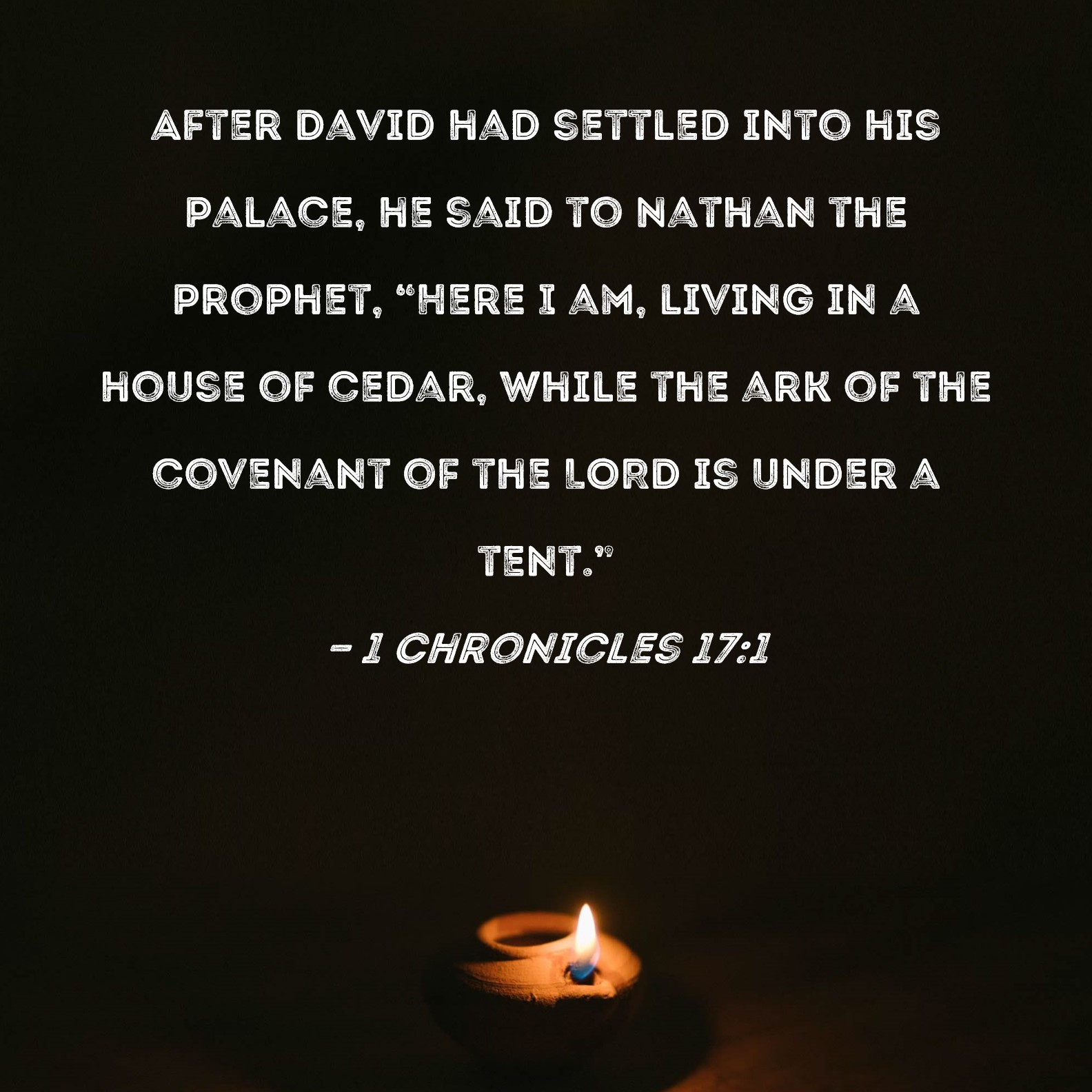 1 Chronicles 17:1 After David had settled into his palace, he said to Nathan the prophet, "Here I am, living in a house of cedar, while the ark of the covenant of the LORD is under a tent."