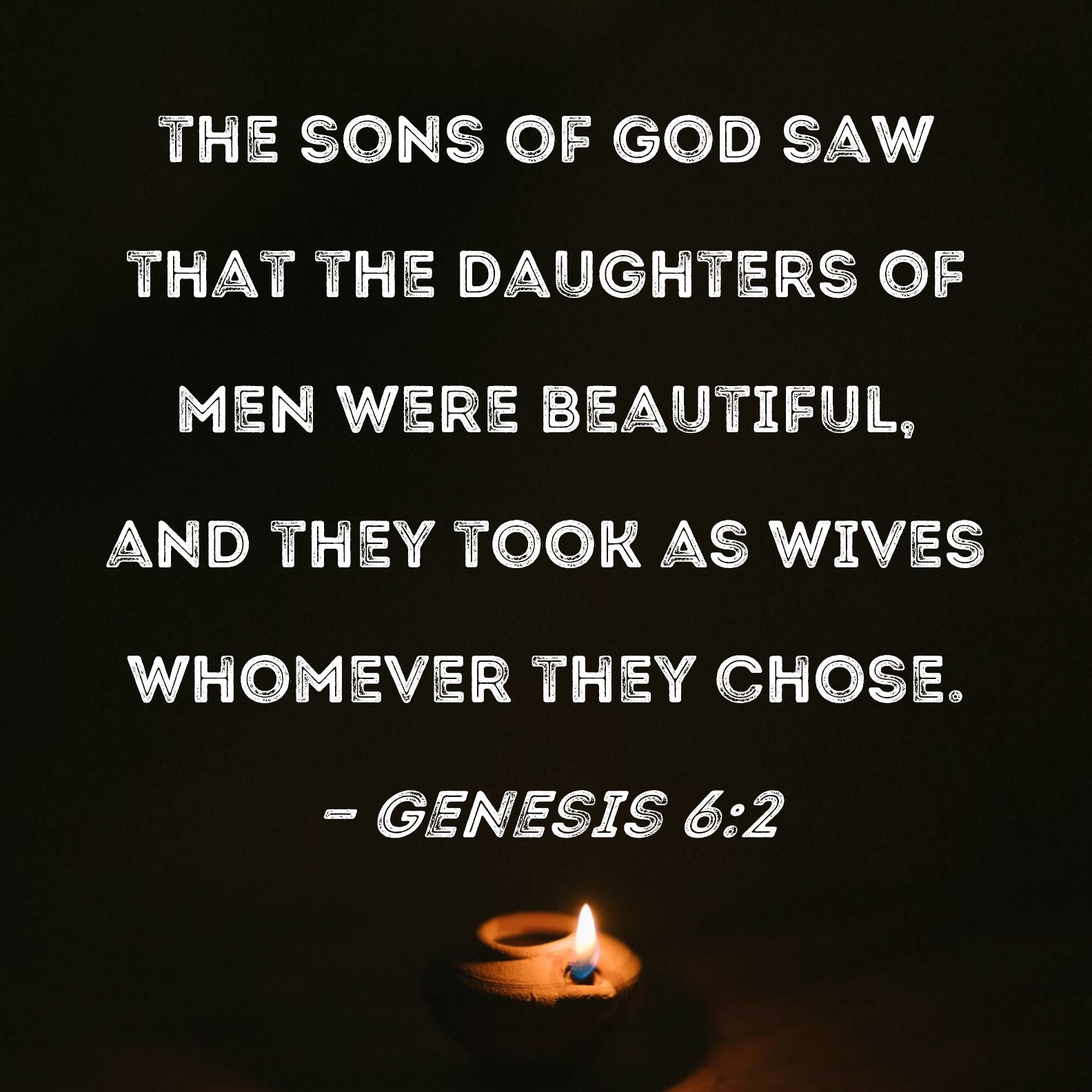 Genesis 6:2 the sons of God saw that the daughters of men were beautiful, and they took as wives whomever they chose.