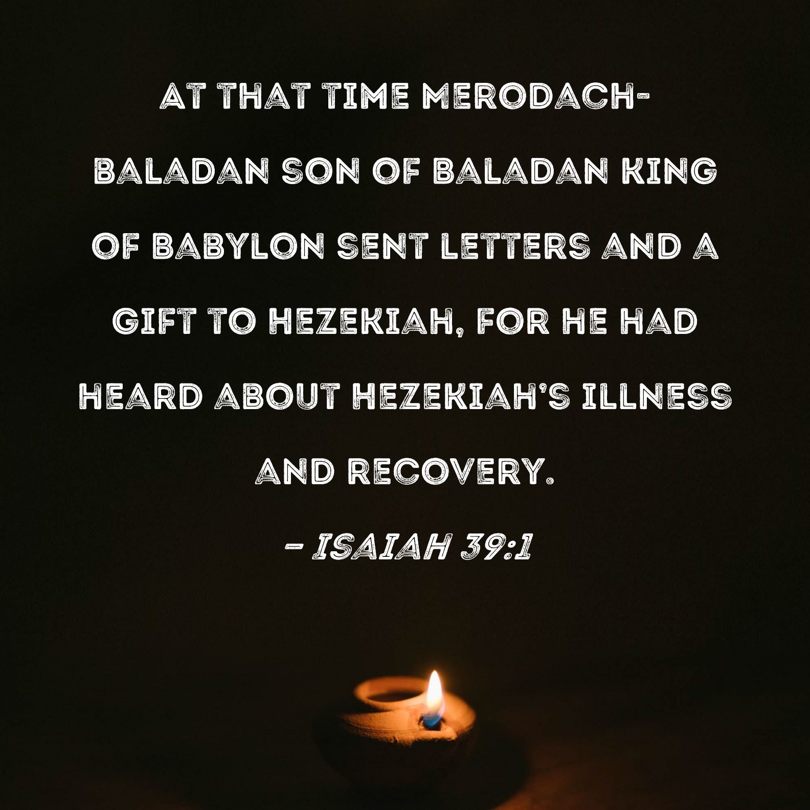 Isaiah 39:1 At that time Merodach-baladan son of Baladan king of Babylon sent letters and a gift to Hezekiah, for he had heard about Hezekiah's illness and recovery.