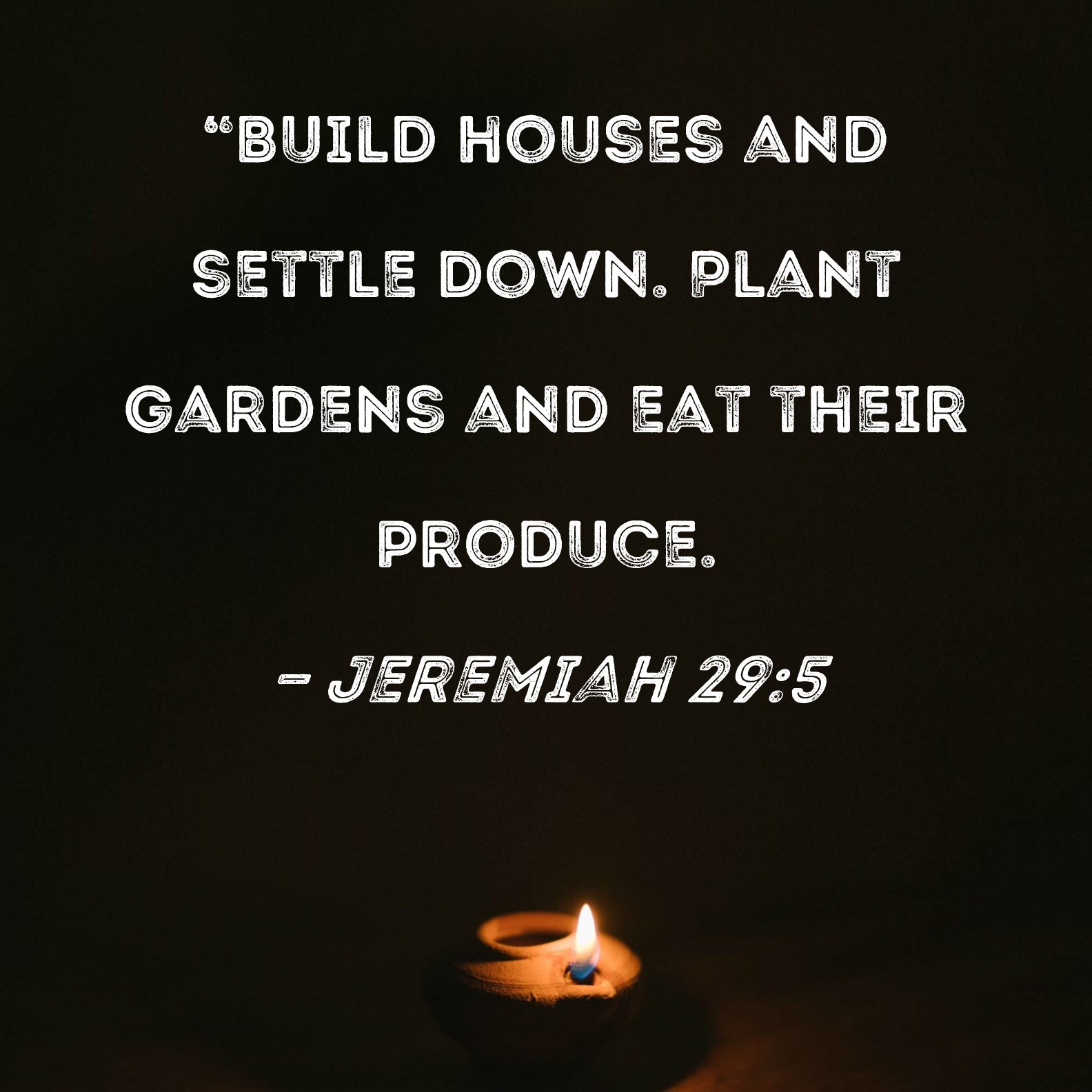 Jeremiah 29:5 "Build houses and settle down. Plant gardens and eat their produce.