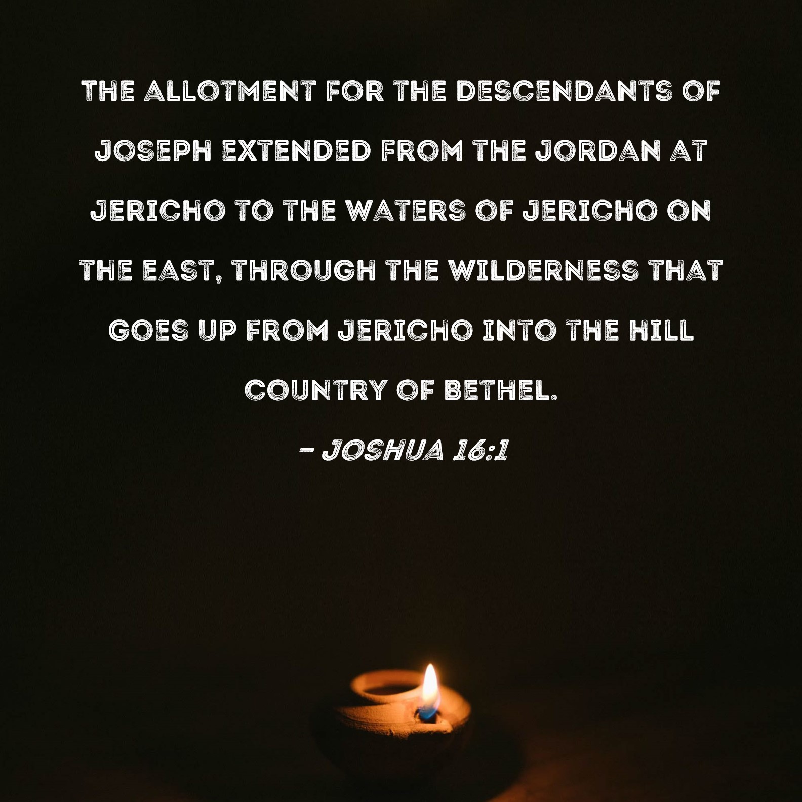 Joshua 16:1 The allotment for the descendants of Joseph extended from the Jordan at Jericho to the waters of Jericho on the east, through the wilderness that goes up from Jericho into the hill country of Bethel.