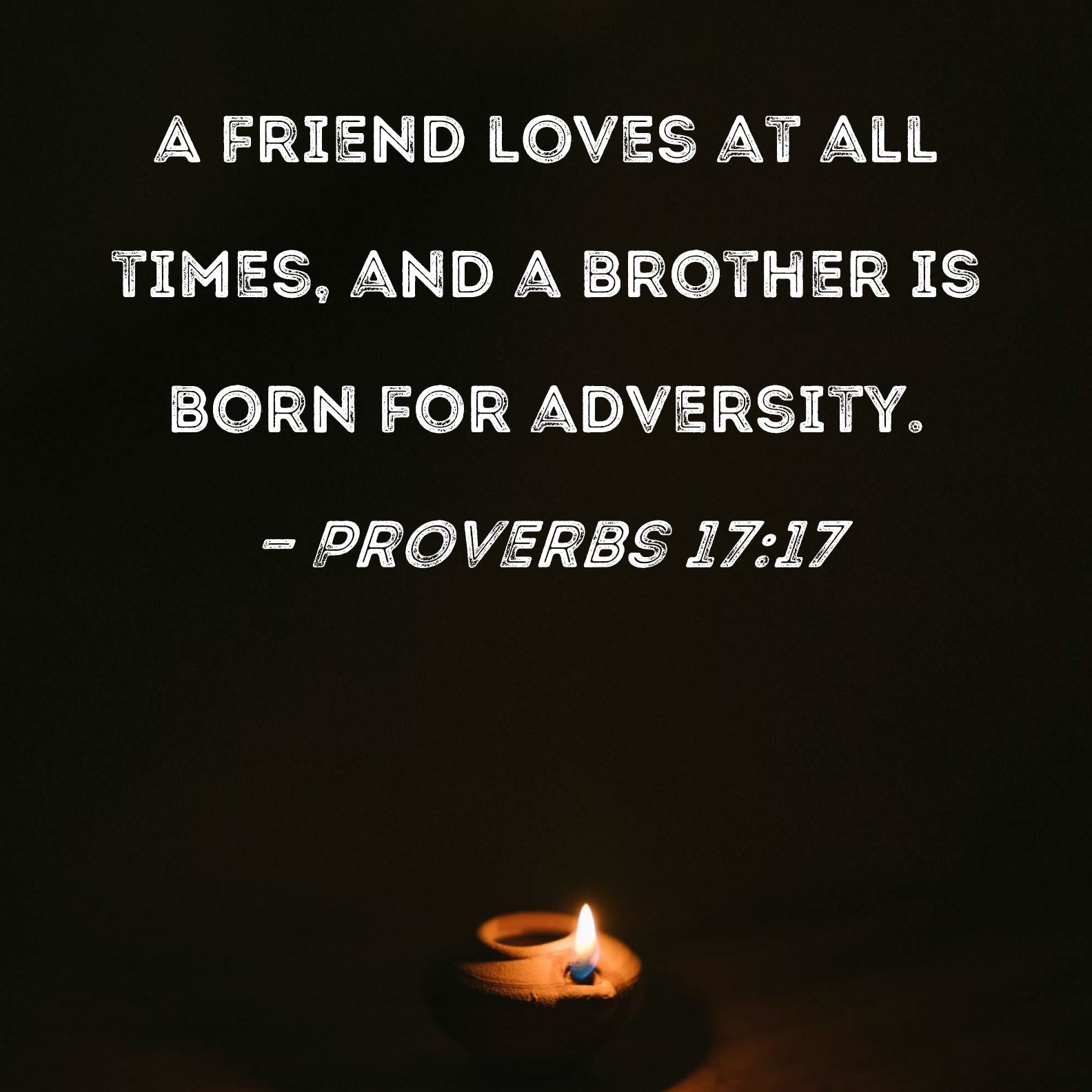 Proverbs 17:17 A friend loves at all times, and a brother is born for adversity.