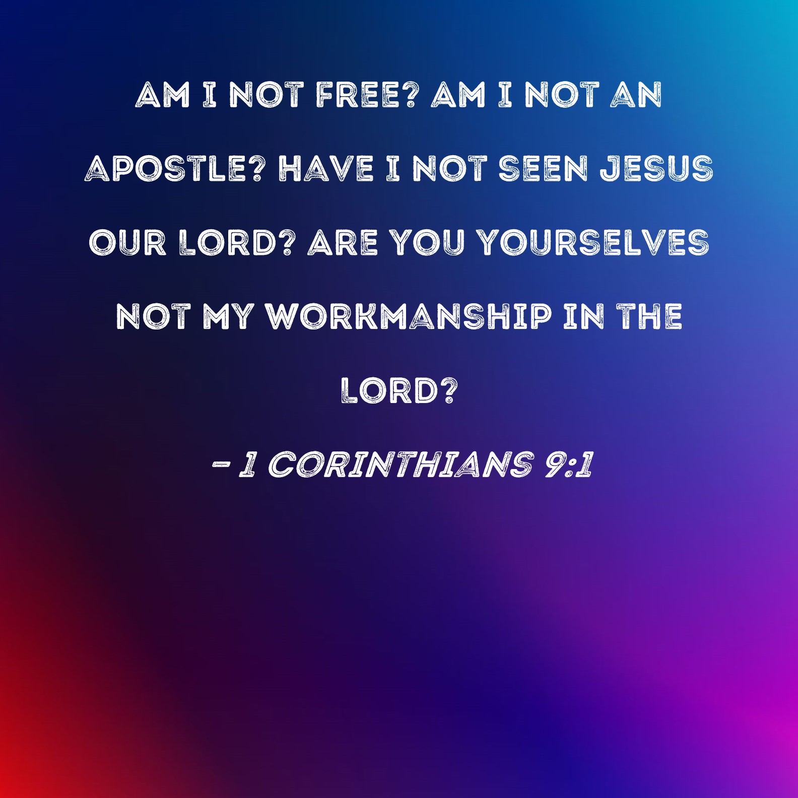 1 Corinthians 9:1 Am I not free? Am I not an apostle? Have I not seen Jesus our Lord? Are you yourselves not my workmanship in the Lord?