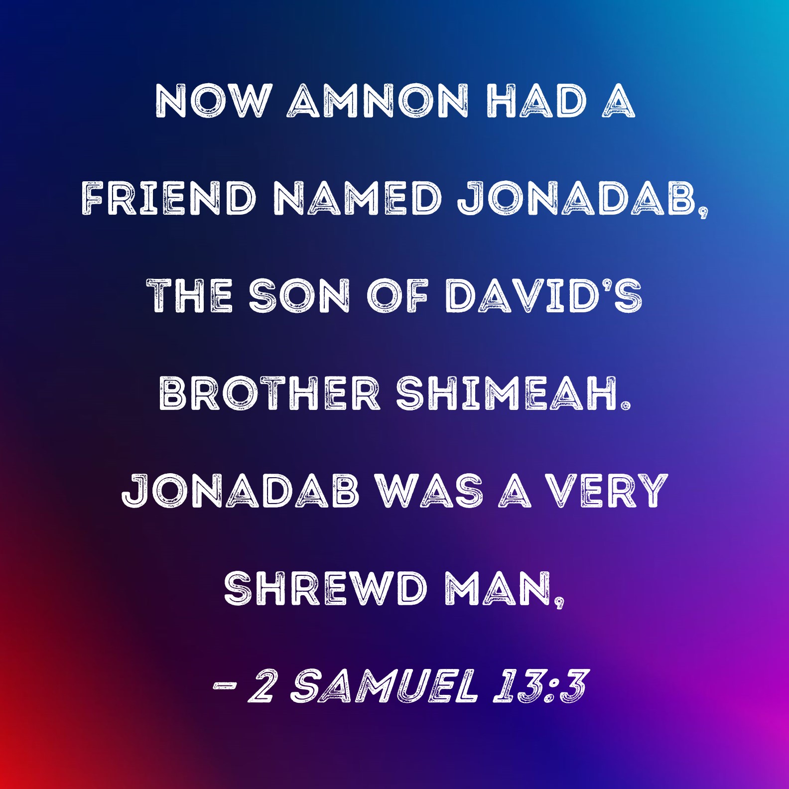 2 Samuel 13:3 Now Amnon had a friend named Jonadab, the son of David's brother Shimeah. Jonadab was a very shrewd man,