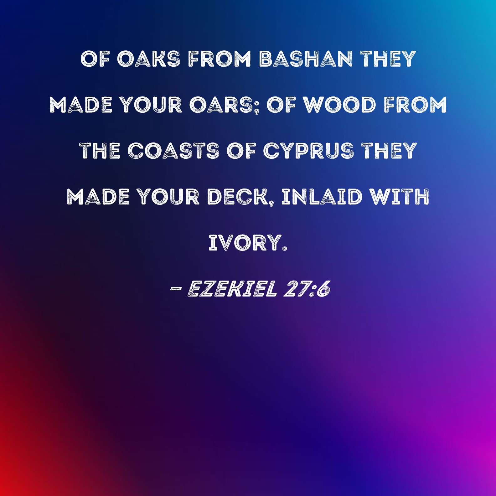 Ezekiel 27:6 Of oaks from Bashan they made your oars; of wood from the coasts of Cyprus they made your deck, inlaid with ivory.