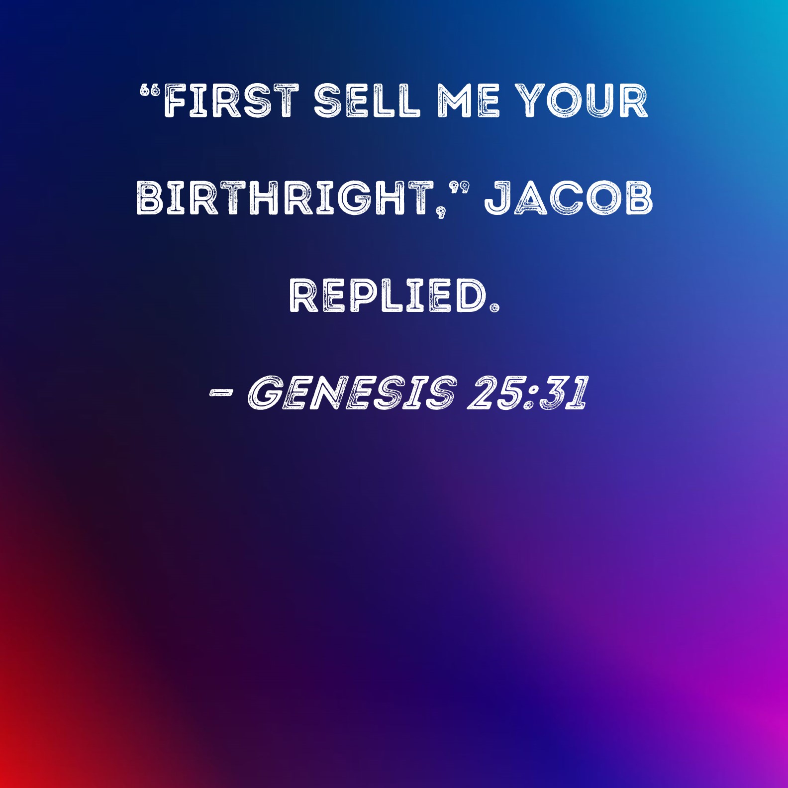 Genesis 25:31 "First sell me your birthright," Jacob replied.