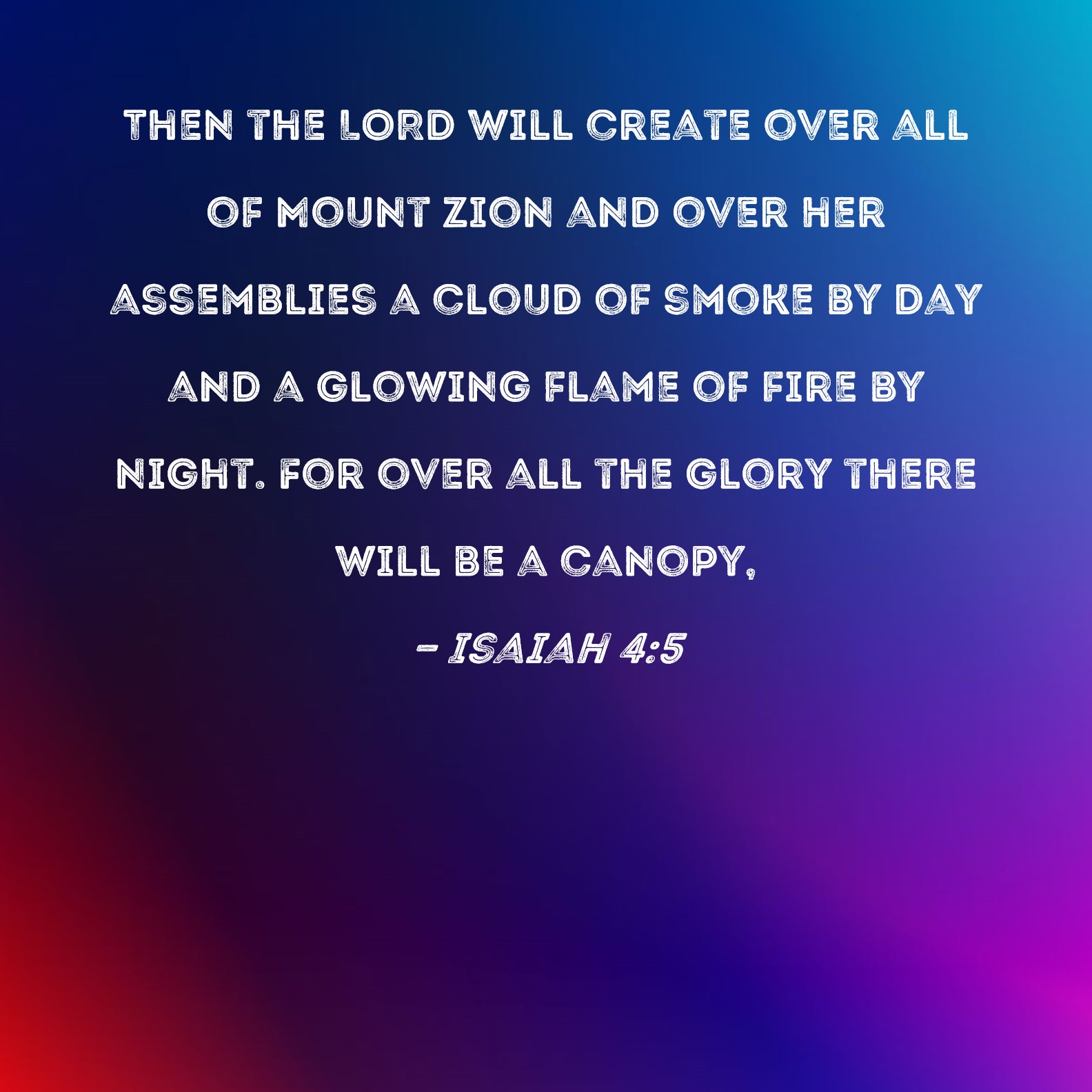 Isaiah 4:5 Then the LORD will create over all of Mount Zion and over her assemblies a cloud of smoke by day and a glowing flame of fire by night. For over all the glory there will be a canopy,
