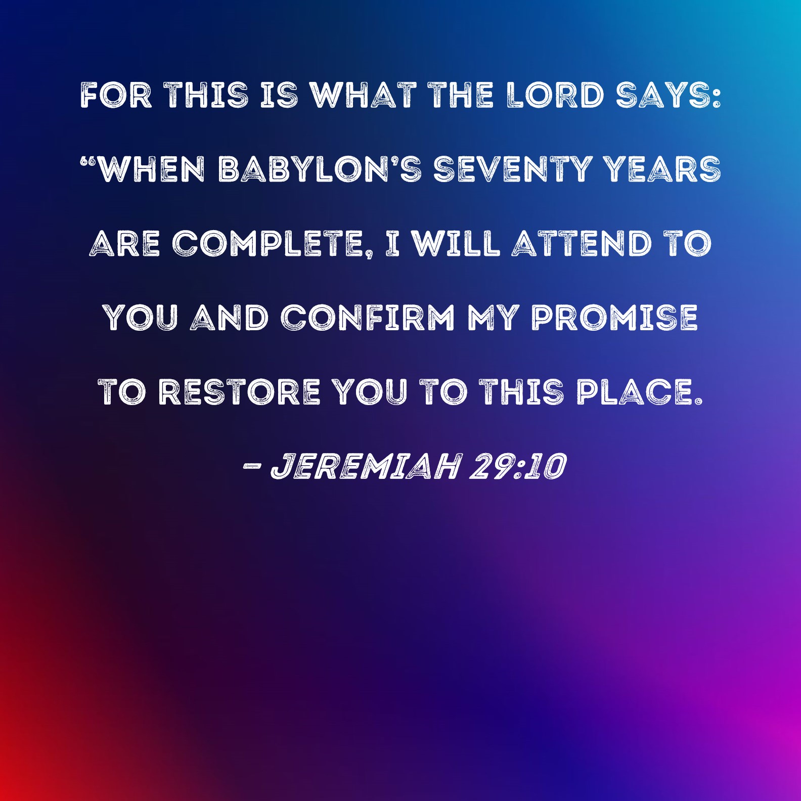 Jeremiah 29:10 For this is what the LORD says: "When Babylon's seventy years are complete, I will attend to you and confirm My promise to restore you to this place.