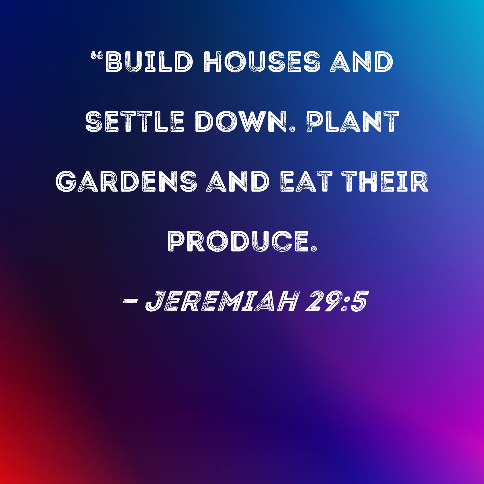 Jeremiah 29:5 "Build houses and settle down. Plant gardens and eat their produce.