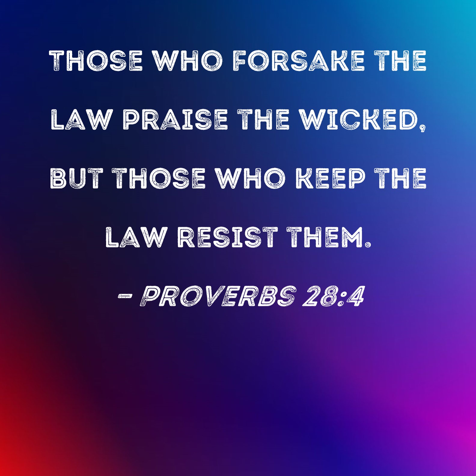 Proverbs 28:4 Those who forsake the law praise the wicked, but those who keep the law resist them.