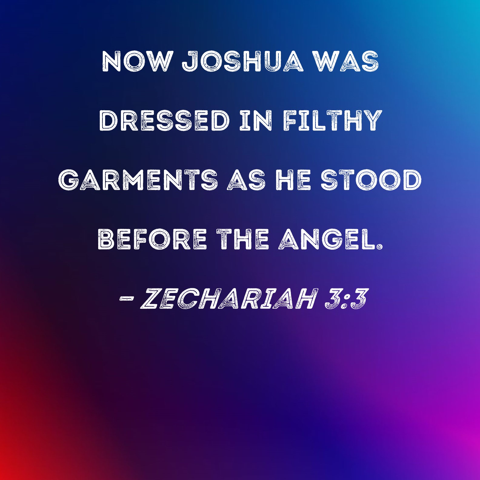 Zechariah 3:3 Now Joshua was dressed in filthy garments as he stood before the angel.