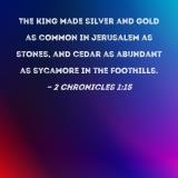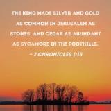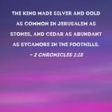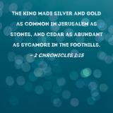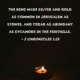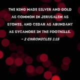 The king made silver and gold as common in Jerusalem as stones, and cedar as abundant as sycamore in the foothills.