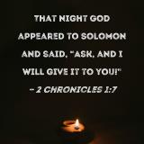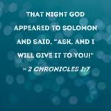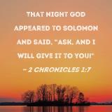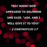 That night God appeared to Solomon and said, "Ask, and I will give it to you!"
