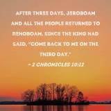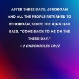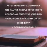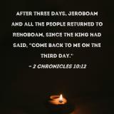 After three days, Jeroboam and all the people returned to Rehoboam, since the king had said, "Come back to me on the third day."