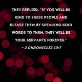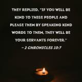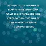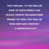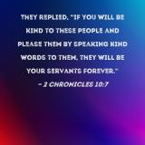 They replied, "If you will be kind to these people and please them by speaking kind words to them, they will be your servants forever."
