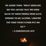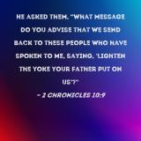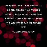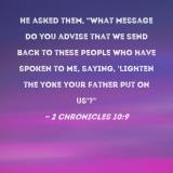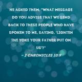 He asked them, "What message do you advise that we send back to these people who have spoken to me, saying, 'Lighten the yoke your father put on us'?"