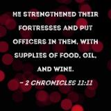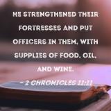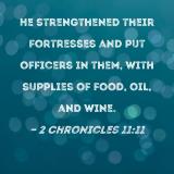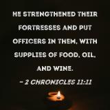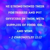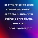 He strengthened their fortresses and put officers in them, with supplies of food, oil, and wine.