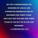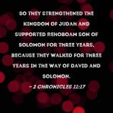So they strengthened the kingdom of Judah and supported Rehoboam son of Solomon for three years, because they walked for three years in the way of David and Solomon.