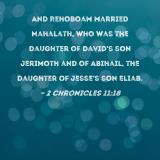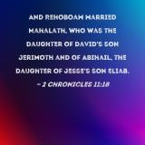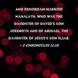 And Rehoboam married Mahalath, who was the daughter of David's son Jerimoth and of Abihail, the daughter of Jesse's son Eliab.