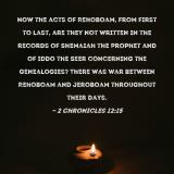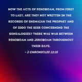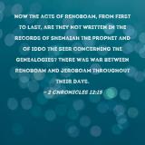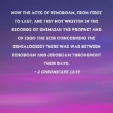 Now the acts of Rehoboam, from first to last, are they not written in the records of Shemaiah the Prophet and of Iddo the Seer concerning the genealogies? There was war between Rehoboam and Jeroboam throughout their days.