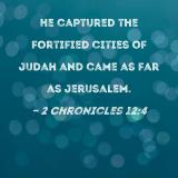 He captured the fortified cities of Judah and came as far as Jerusalem.