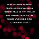 Now Jeroboam had sent troops around to ambush from the rear, so that while he was in front of Judah, the ambush was behind them.
