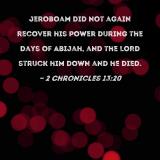 Jeroboam did not again recover his power during the days of Abijah, and the LORD struck him down and he died.