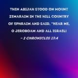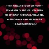 Then Abijah stood on Mount Zemaraim in the hill country of Ephraim and said, "Hear me, O Jeroboam and all Israel!