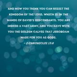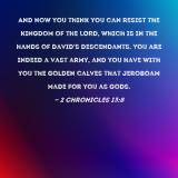 And now you think you can resist the kingdom of the LORD, which is in the hands of David's descendants. You are indeed a vast army, and you have with you the golden calves that Jeroboam made for you as gods.