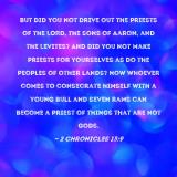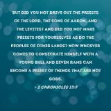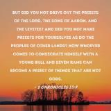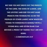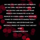 Pictures and Artwork But did you not drive out the priests of the LORD, the sons of Aaron, and the Levites? And did you not make priests for yourselves as do the peoples of other lands? Now whoever comes to consecrate himself with a young bull and seven rams can become a priest of things that are not gods. |