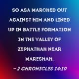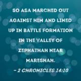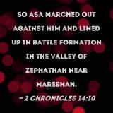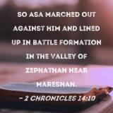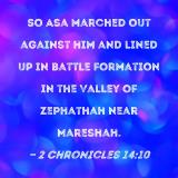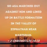 So Asa marched out against him and lined up in battle formation in the Valley of Zephathah near Mareshah.