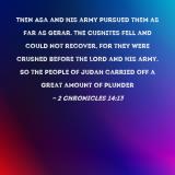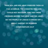 Then Asa and his army pursued them as far as Gerar. The Cushites fell and could not recover, for they were crushed before the LORD and His army. So the people of Judah carried off a great amount of plunder