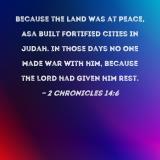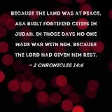 Because the land was at peace, Asa built fortified cities in Judah. In those days no one made war with him, because the LORD had given him rest.
