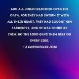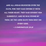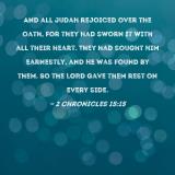 And all Judah rejoiced over the oath, for they had sworn it with all their heart. They had sought Him earnestly, and He was found by them. So the LORD gave them rest on every side.