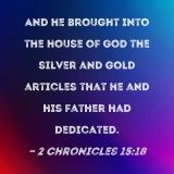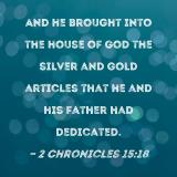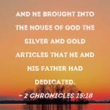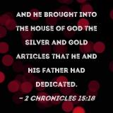 And he brought into the house of God the silver and gold articles that he and his father had dedicated.