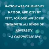 Nation was crushed by nation, and city by city, for God afflicted them with all kinds of adversity.