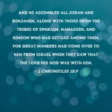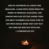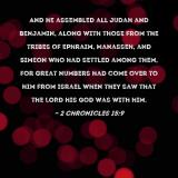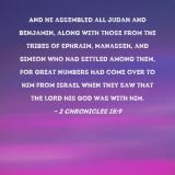 Pictures and Artwork And he assembled all Judah and Benjamin, along with those from the tribes of Ephraim, Manasseh, and Simeon who had settled among them, for great numbers had come over to him from Israel when they saw that the LORD his God was with him. |