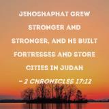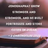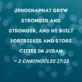 Jehoshaphat grew stronger and stronger, and he built fortresses and store cities in Judah