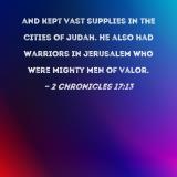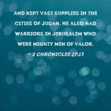 and kept vast supplies in the cities of Judah. He also had warriors in Jerusalem who were mighty men of valor.
