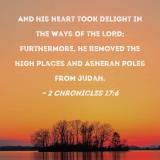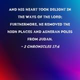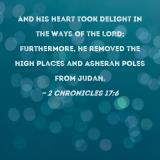 And his heart took delight in the ways of the LORD; furthermore, he removed the high places and Asherah poles from Judah.